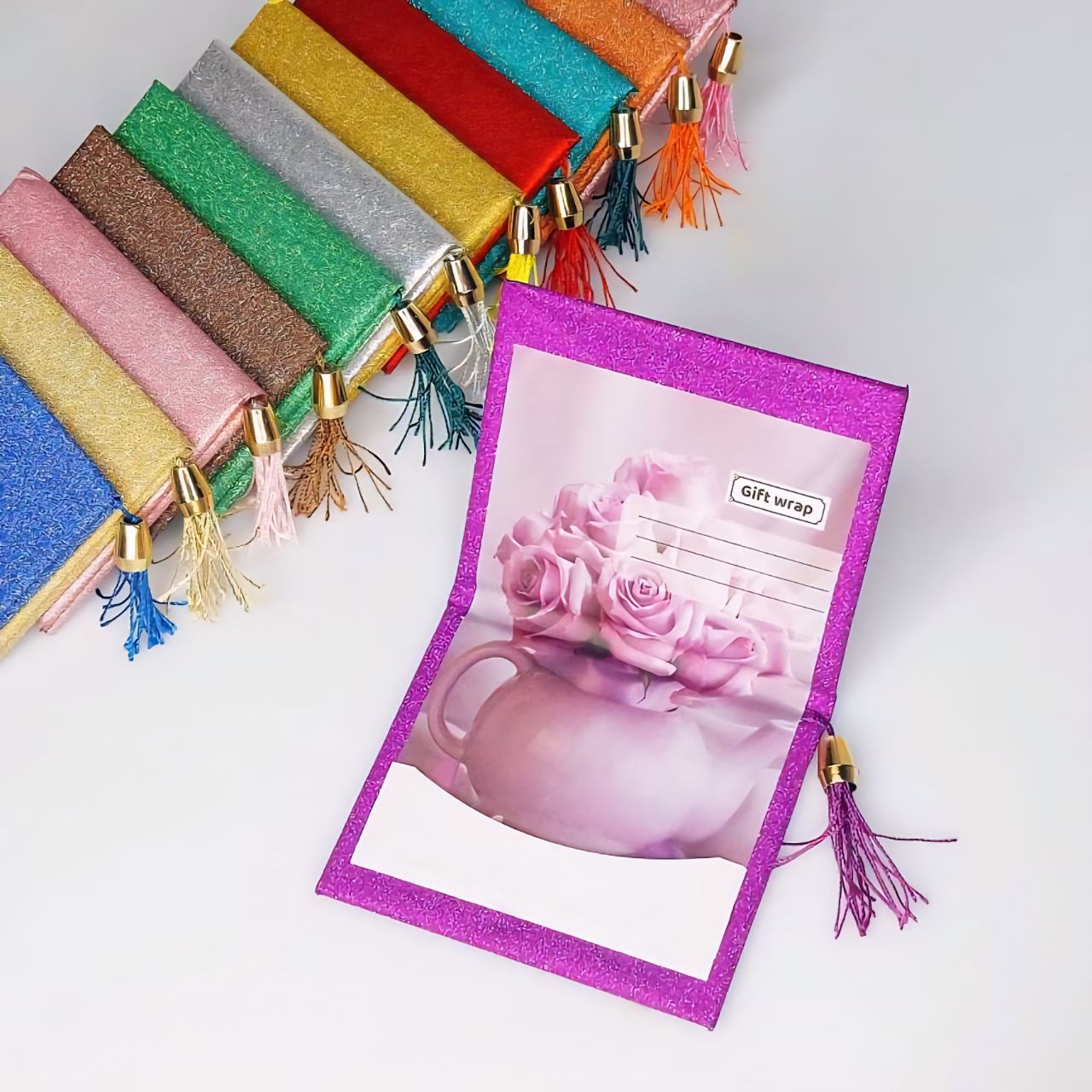 پاکتهای فانتزی منگولهدار با ظاهر براق و جذاب، جلوهای لاکچری به هدیه داده و نسبت به پاکتهای ساده، ارزش هدیه را محسوساً افزایش میدهد.